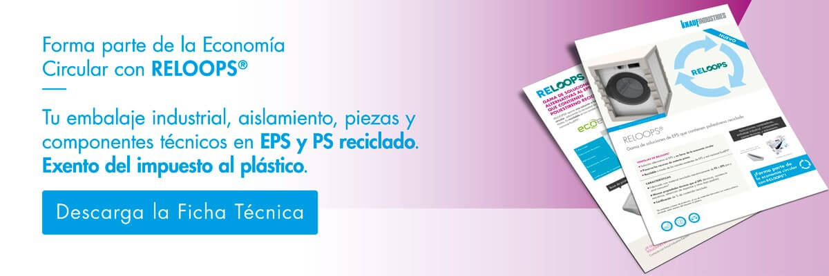 En el caso de RELOOPS® se incorpora material procedente del reciclaje mecánico de poliestireno (PS) o poliestireno expandido (EPS) pre y post consumo. Este material reciclado tiene las mismas propiedades que el EPS: resistencia térmica, resistencia mecánica, absorción de impactos, y otras propiedades bajo pedido.