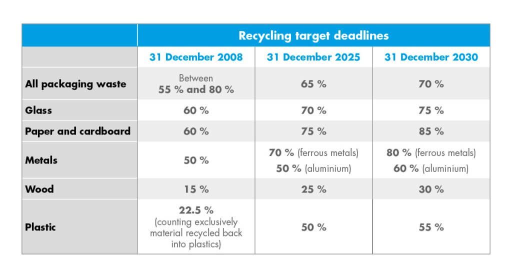 Para 2030 todos los envases tendrán que ser reciclables. Unido a campañas de concienciación ciudadana y la mejora de los sistemas de recogida y procesamiento de plásticos, pretende poder reciclar un 55% del plástico procedente de envases.