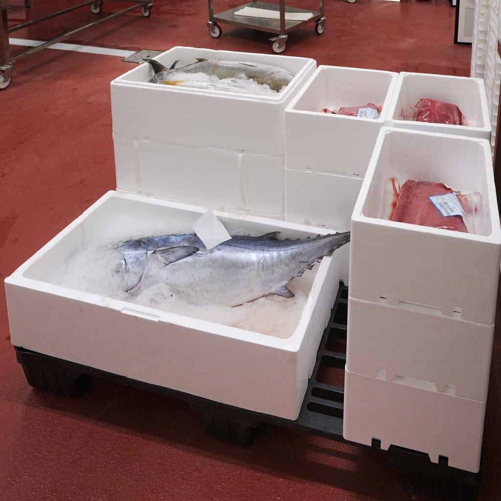 En la lonja, el 70-80% del pescado suele transferirse a envases de poliestireno expandido (EPS). El poliestireno expandido destaca por: