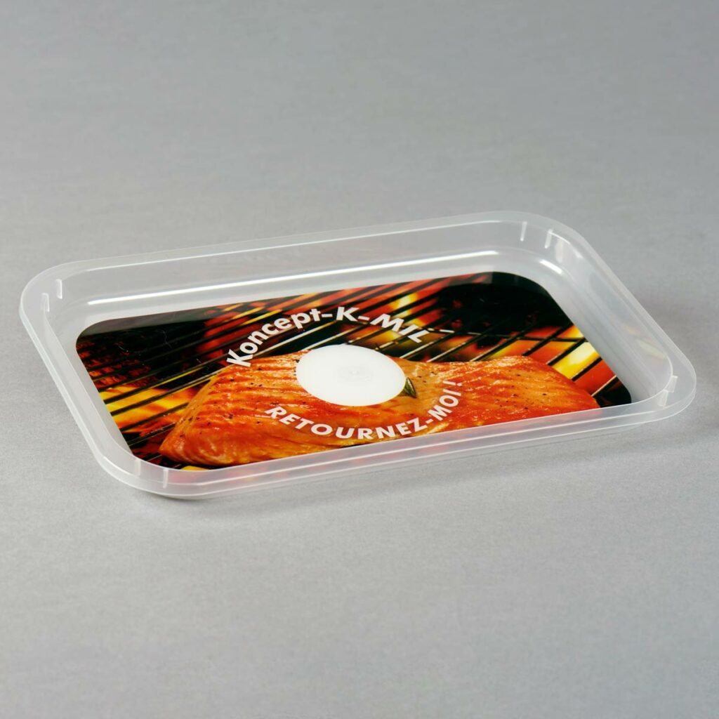 KAPLIGHT® es un material negro sin carbono. De esta forma es ‘visible’ para las máquinas que clasifican plásticos en las plantas de reciclado. Uno de sus usos más frecuentes es en las bandejas de pescado o fruta frescos y sellados.