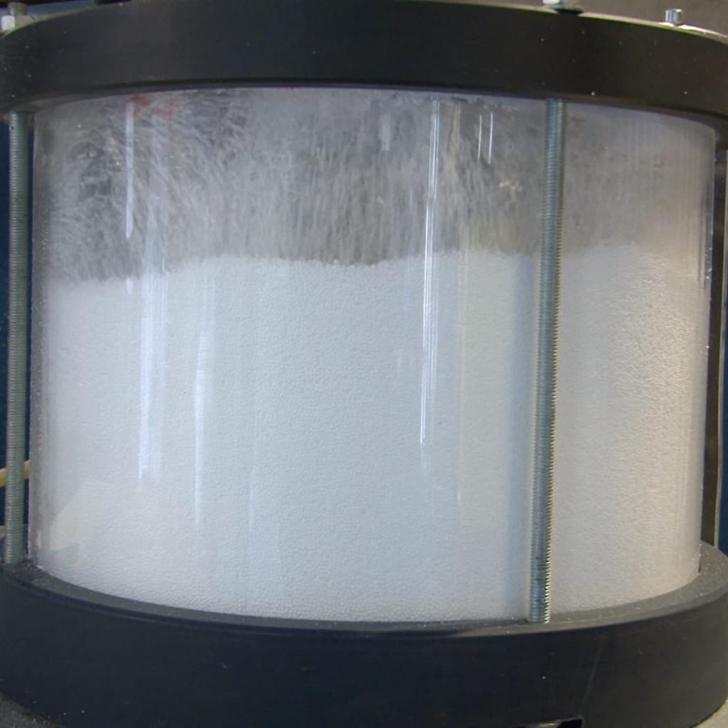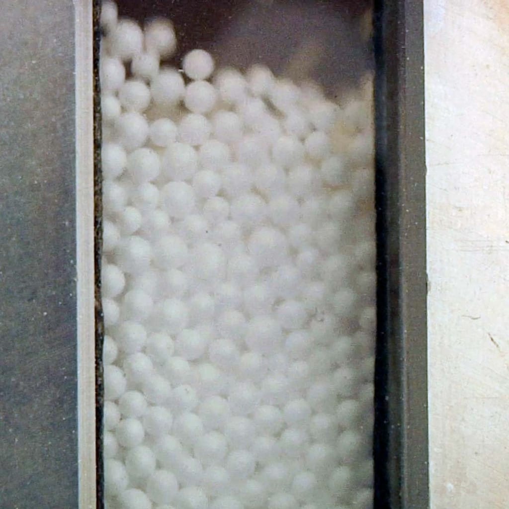 Las perlas se calientan con vapor de agua a temperaturas que rondan los 80-100°C hasta que se expanden y se generan pequeñas celdas llenas de aire en su interior.